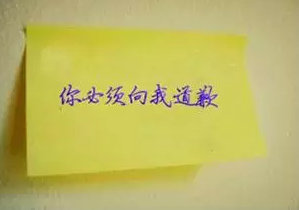 妻子去洗漱,口杯上又有个纸条,上写:如果你不知道该怎样向我道歉的话,书桌上有提示。