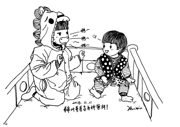 想到远在沈阳的公公婆婆没办法经常看到孙子,徐昕养成了用照片记录孩子成长点滴的习惯。后来,这些照片成了她绘画的重要素材。