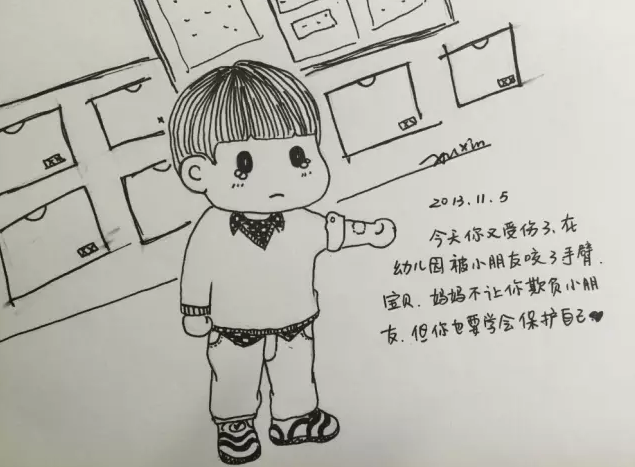 徐昕平时就喜欢随手画些东西,有了儿子之后,她随手画的画中就多了孩子的身影。在徐昕的汽车后备箱里,放着几本速写本,闲的时候她就会拿出画册来画上几笔。