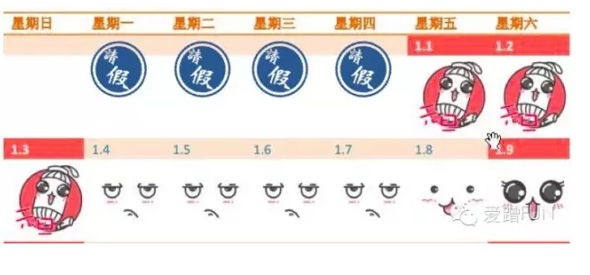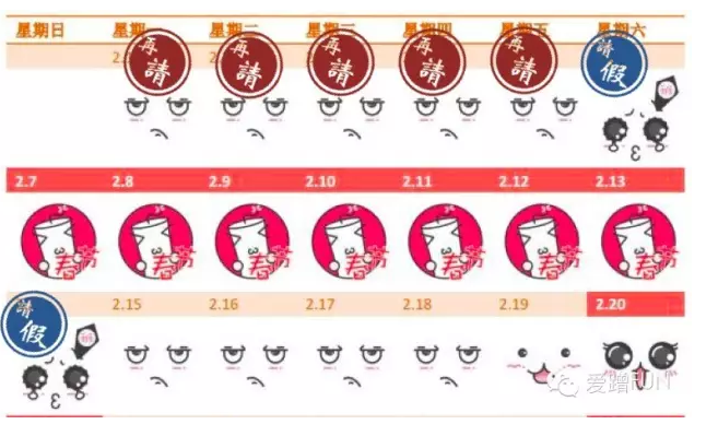 如果把要补上班的6日和14日请假,就能连放9天假,把春节和情人节都包括在里面了。而且假前假后也避免了要连上6天班的悲剧。