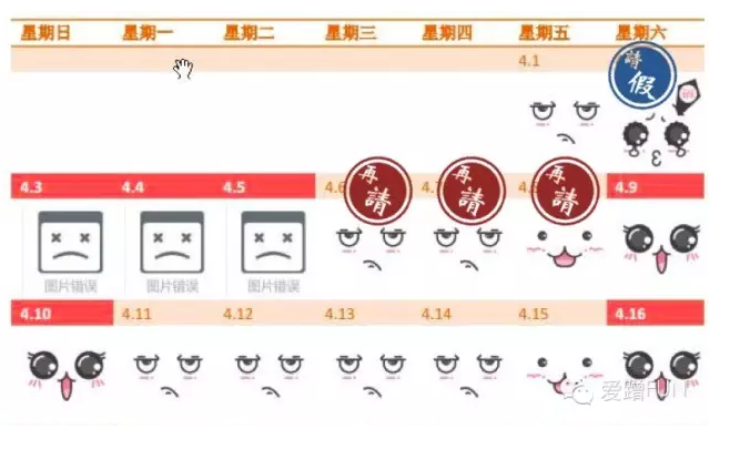 胆小的就休4天,4月30日请假,连放30、1、2、3共4天,假前周避开了6天班,假后周只用上3天班~