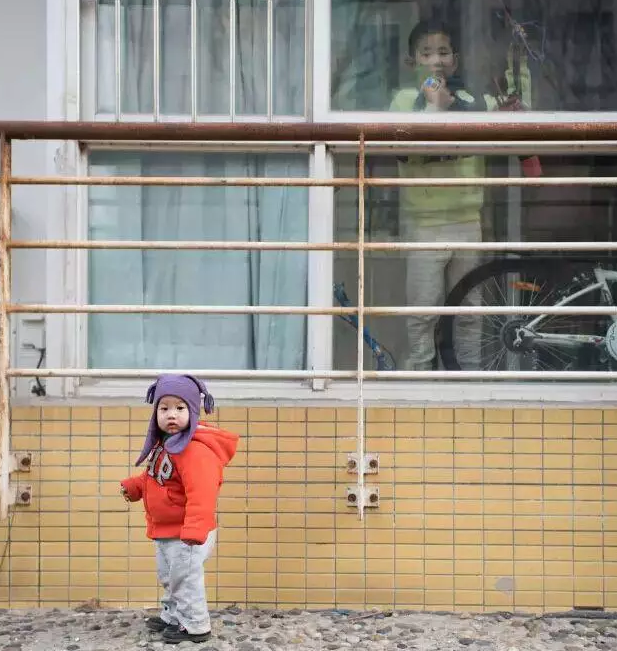 爷俩收拾停当,看看天气还不错,下楼遛娃去喽!