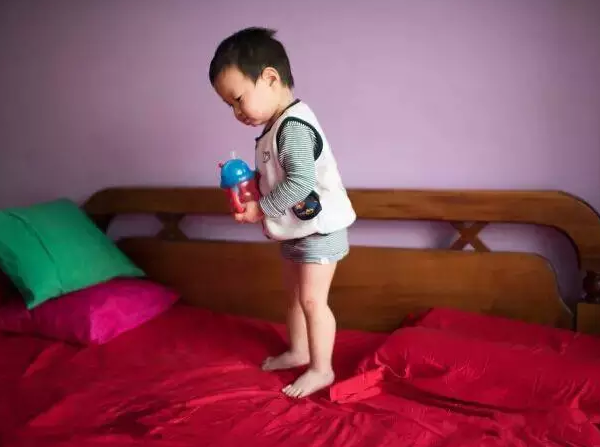 刚换下尿不湿,就在床上尿了泡。嘿,这小子!