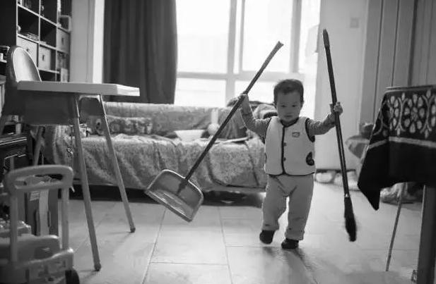 大树着急做晚饭,小树索抱,抱了会儿不得不放下,哭得很伤心。