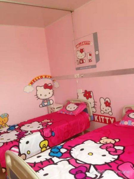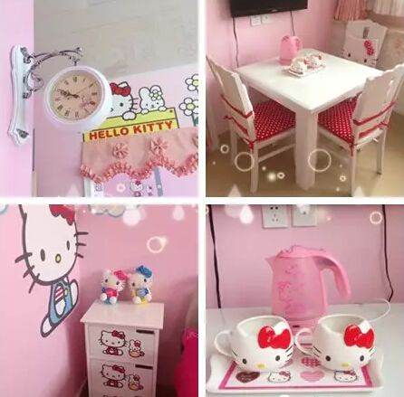 这里有齐全的配套设施 杯子、镜子、玩偶、床上用品、柜子、牙缸牙刷…… 所有的设施、用品都是kitty的……用起来都爱不释手呢!有木有想过来体验把的感脚?