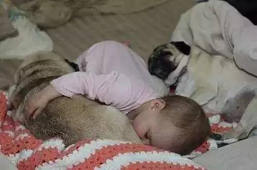 不管是喵星人还是汪星人,都很乐意帮你陪着宝宝睡觉觉的: