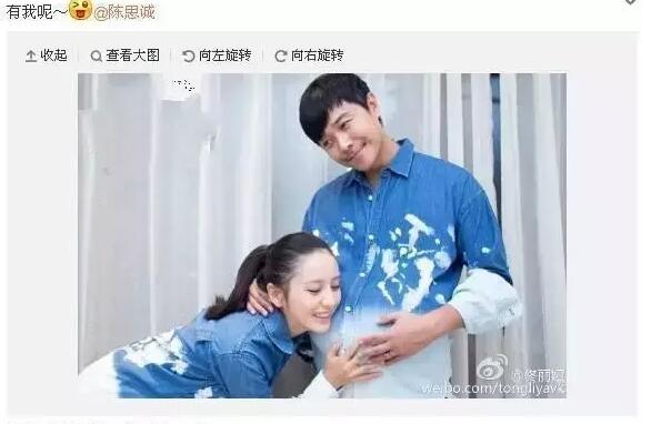 去年10月21日,夫妻双双在微博发图,个说“我有了”,另个说“有我呢”,虽然恶搞也证实了怀孕的消息。