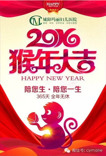 温馨提醒:孕妈肩负着胎儿健康的使命,春节期间吃喝玩乐要谨慎小心,以胎儿健康安全为前提,旦出现异常要及时就近就医。城阳玛丽妇儿医院春节期间正常接诊。后,祝孕妈们过个安全温暖的春节,顺利诞下猴宝宝。