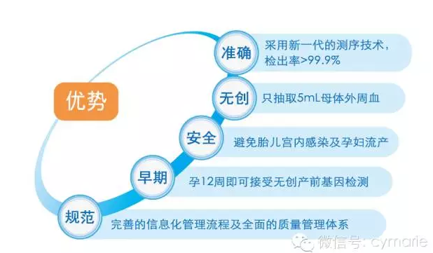 无创DNA产前检测,是一项安全、有效、快速的新型胎儿染色体疾病检测技术。只需抽取孕妇静脉血,提取游离DNA,利用新一代高通量测序技术,结合生物信息分析,得到胎儿的遗传信息,检测出胎儿是否患三大染色体疾病[唐氏综合征(21-三体综合征)、爱德华氏综合征(18-三体综合征)、帕陶氏综合征(13-三体综合征)]。