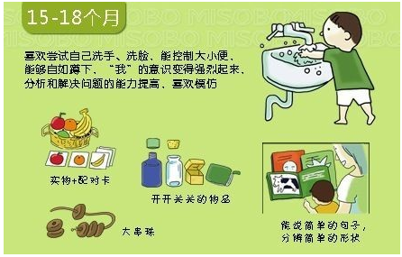 喜欢尝试自己洗手、洗脸、能够自如蹲下,能说简单的句子