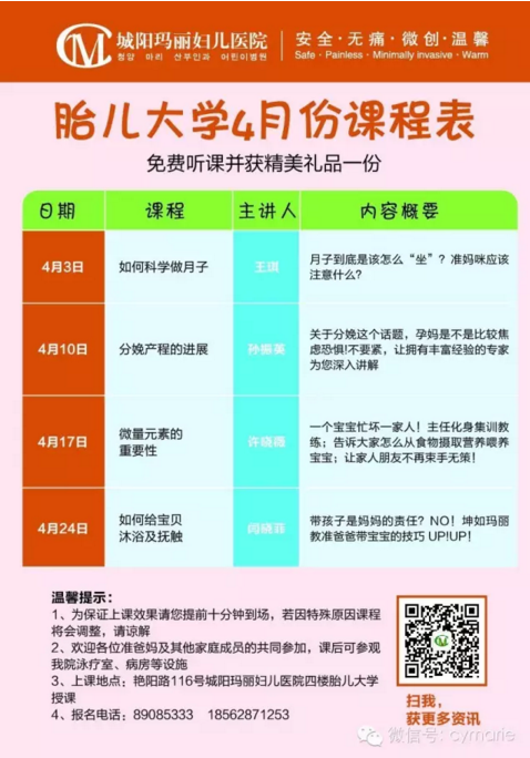 本文信息内容仅供参考。如果您的身体有不适症状,请及时到医院就诊,明确诊断后按医嘱治疗。 为了方便您更好地了解疾病相关信息,城阳玛丽妇儿医院开设了专家免费“在线咨询”服务您可以直接点击与专家在网上对话。 您也可以直接拨打健康热线:0532-85652962 本网站还提供“网上挂号”、“有问必答”等服务内容,欢迎您选择,我们将为您提供热诚服务,并保护您的隐私。祝您健康!
