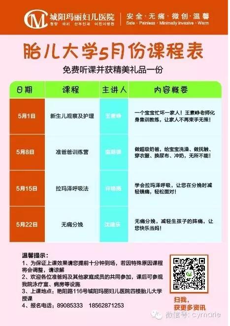 本文信息内容仅供参考。如果您的身体有不适症状,请及时到医院就诊,明确诊断后按医嘱治疗。 为了方便您更好地了解疾病相关信息,城阳玛丽妇儿医院开设了专家免费“在线咨询”服务您可以直接点击与专家在网上对话。 您也可以直接拨打健康热线:0532-85652962 本网站还提供“网上挂号”、“有问必答”等服务内容,欢迎您选择,我们将为您提供热诚服务,并保护您的隐私。祝您健康!