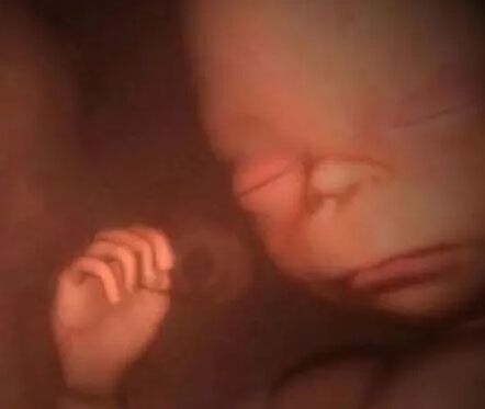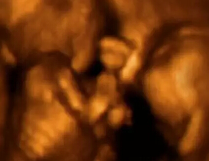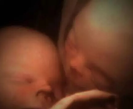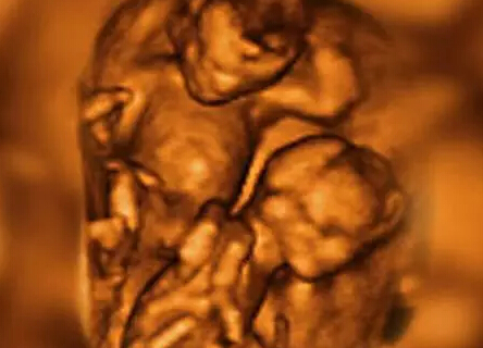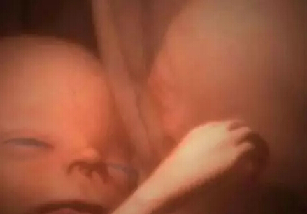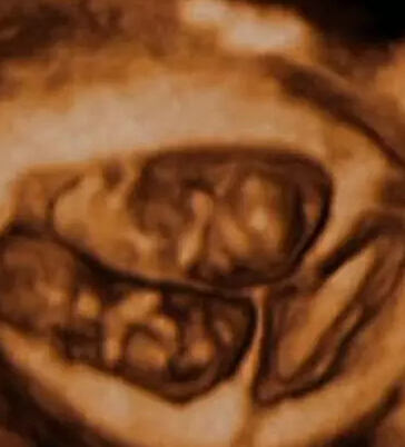 在这里你甚至可以清晰辨认出画面前方这个双胞胎胎儿手上的根血管。